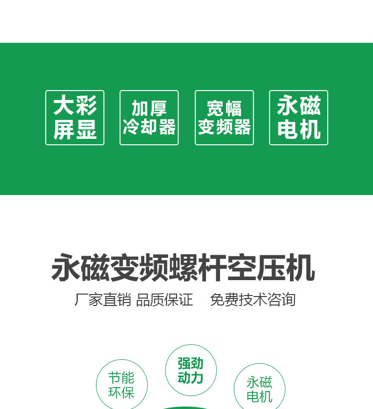 空壓機整機能效高于國家一級能效標準,每產一立方的氣比行業大部分機器用電量少,氣量足,比行業基準多10%,適應惡劣工況條件,按24小時滿載運行設計制造,將機械和電器完美融合。
